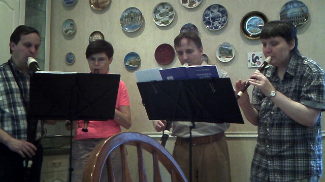 Исполняют: Марина Махорина (блокфлейта сопрано), Юлия Крючкова (блокфлейта альт), Максим Хорош (блокфлейта тенор), Николай Барабанщиков (блокфлейта бас). Репетиция 29.06.2017, первая встреча "TRIAS" в составе квартета. © Марина Махорина