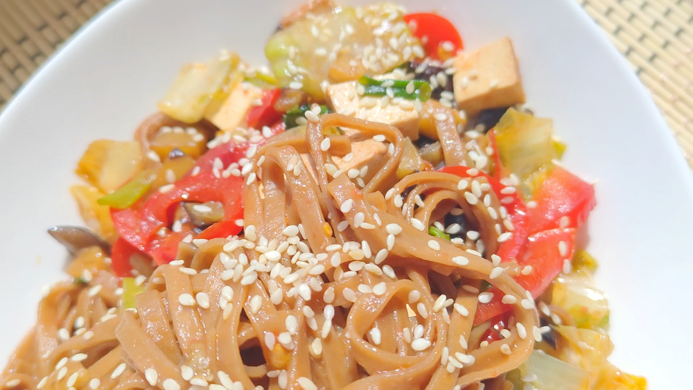ГРЕЧНЕВАЯ ЛАПША в соусе с овощами.