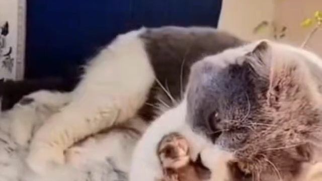 Кошка высиживает яйца