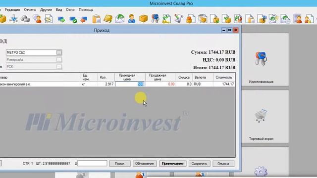 Документ прихода Microinvest