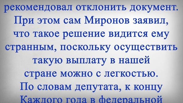 13 Пенсия Всем Пенсионерам 15 000 рублей! В данном выпуске мы сообщим о тринадцатой пенсии, так российским пенсионерам рассказали о дополнительной денежной выплате к концу года. Получить такие деньги должен каждый пенсионер в стране, и средний размер выплаты должен составить порядка пятнадцати тысяч рублей. А финансирование подобных разовых пособий уже найдено. Как рассказал лидер одной из фракций в Госдуме Сергей Миронов, речь идет о так называемой тринадцатой пенсии для всех российских пенсионеров. Законопроект о такой выплате ранее был внесен на рассмотрение в нижнюю палату парламента, однако профильный комитет рекомендовал отклонить документ. При этом сам Миронов заявил, что такое решение видится ему странным, поскольку осуществить такую выплату в нашей стране можно с легкостью. По словам депутата, к концу каждого года в федеральной казне остается большое количество денег, которые чиновники не успели израсходовать за предыдущие месяцы. Исключением не будет и этот год, подчеркнул парламентарий, то есть в федеральном бюджете будут излишки к концу декабря 2022 года. Речь идет о сумме в несколько сотен миллиардов рублей, а возможно, даже о триллионе рублей. Именно из этих денег можно было бы взять средства, чтобы профинансировать выплату пенсионерам к Новому году. На данный момент, законопроект относительно тринадцатой пенсии для всех пенсионеров не принят. Но ситуация может измениться уже в ближайшие дни. Мы считаем, что такая пенсия, нужна всем пенсионерам и каждый год, ставьте лайк если тоже так думаете, а также подпишитесь на канал, чтобы быть в курсе возможного принятия тринадцатой пенсии и напишите какого размера, она должна быть, например, как пенсия у самого пенсионера или фиксированной суммой для всех пенсионеров?