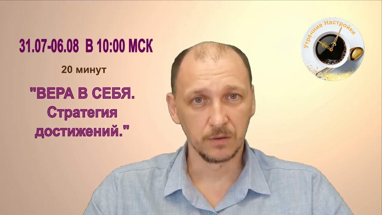 Забронировать место на неделю 31.07-06.08 "ВЕРА В СЕБЯ. Стратегия достижений." https://deir.org/paykeeper/everyday/form.php?id=121 «УТРЕННИЕ НАСТРОЙКИ» – это идеальный способ ввести в свой каждый день невероятно полезные навыки с эффектом как по «волшебству». Подписывайтесь на наши каналы в Телеграмм: Проект «УТРЕННИЕ НАСТРОЙКИ», узнать о следующих темах https://t.me/moning_deir анонсы онлайн мероприятий - канал "Апгрейдинг Сознания" https://t.me/upgradingsense Мы в соцсетях https://deir-online.ru/contacts