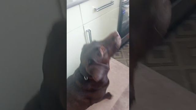 Лай собаки с отбивной едой
