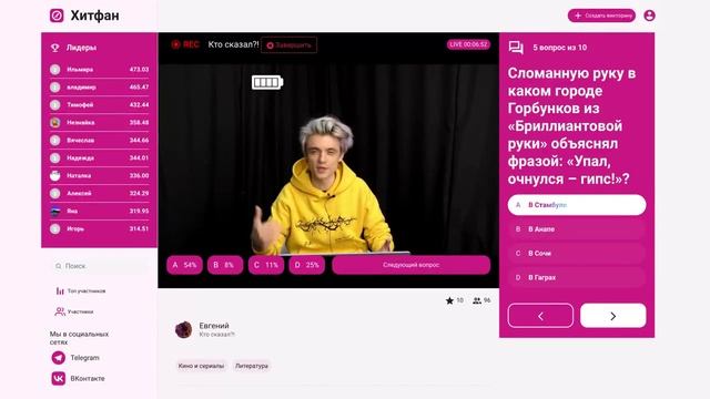 Викторина платформы интерактивных викторин ХитФан с ведущим DFM Евгением Кротовым от 8 ноября