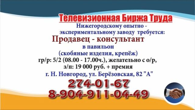 Вакансии и телефоны прямых работодателей в специализированной программе по трудоустройству "Телевизионная Биржа Труда" - г.НИЖНИЙ НОВГОРОД