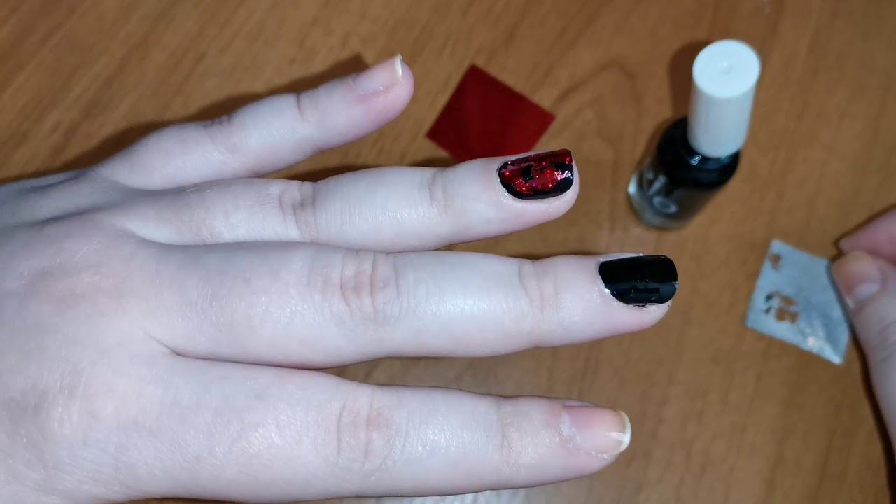 4. Черно-красный маникюр с фольгой
