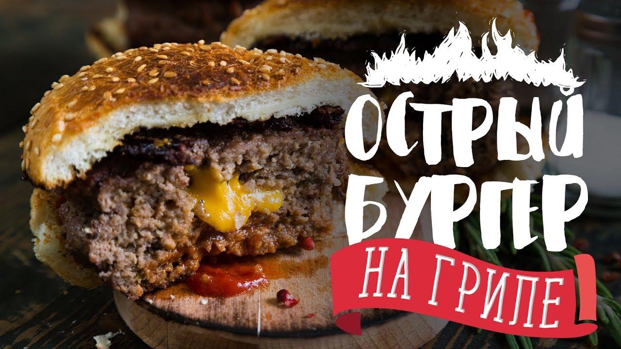 Лето — время пикников и посиделок на природе. Вытаскивайте гриль и делайте острые бургеры по нашему рецепту. Ингредиенты: Помидор — 1-2 шт. Зелень — по вкусу Красный лук — ½ шт. + для подачи Чили — 1½ шт. Говяжий фарш — 450 г Соль, перец, паприка — по вкусу Сыр — 150 г Булочка для бургера — 3 шт. Соус BBQ — 3 ст. л. Салатная зелень На 100 г — 225 ккал Приготовление: Фарш смешиваем с измельченными луком (½ шт.) и зеленью и приправляем. Перемешиваем фарш до однородности, отбиваем и делим на 3 части. Формируем котлеты при помощи стакана с добавлением тертого сыра и измельченного чили. Жарим котлеты на гриле до готовности (жарим до корочки, затем перемещаем котлеты в зону непрямого жара и доводим до желаемой степени прожарки и сочности). Подрумяниваем булочки на гриле, разрезанные пополам. Равномерно смазываем обжаренные половинки булочек соусом BBQ. Выкладываем поверх ½ половинок булочек салатную зелень, котлеты, кольца помидоров и лука. Накрываем оставшимися половинками булочек. Подаем бургеры с печеной картошкой и свежими овощами (или другим гарниром). Рецепты Bon Appetit — видеорецепты на каждый день! Мы в социальных сетях: ВКонтакте: https://vk.com/bon Facebook: https://www.facebook.com/bono.appetito Instagram: http://instagram.com/bon_appetito
