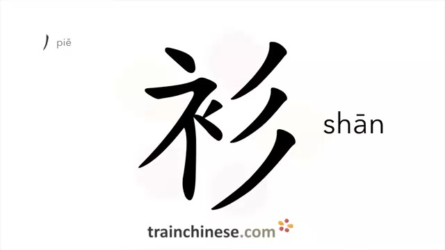 衫 (shān) shirt; upper garment; Chinese gown