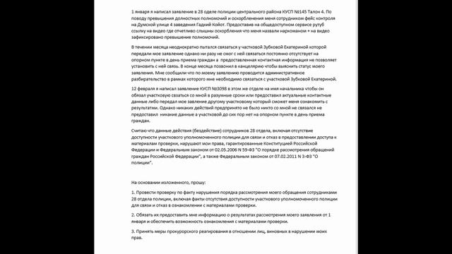 позор продолжается заявление в прокуратуру на 28 отдел