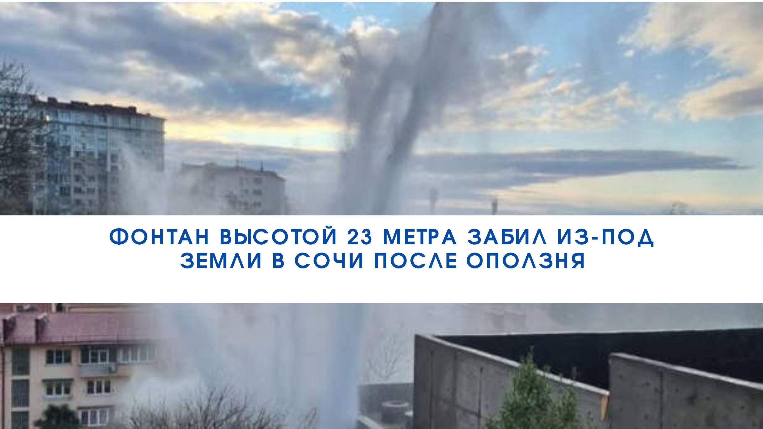 Фонтан высотой 23 метра забил из-под земли в Сочи после оползня///
