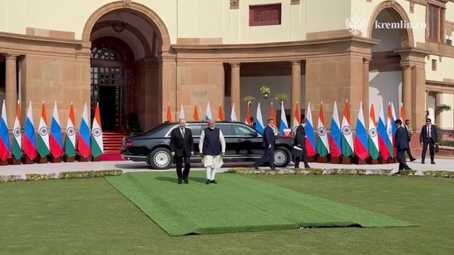Премьер-министр Индии Нарендрой Моди встречает Владимира Путина перед переговорами, Индия, 5 декабря