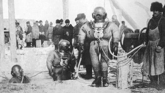 В 19 веке 34 человека в скафандрах вышли из под воды.