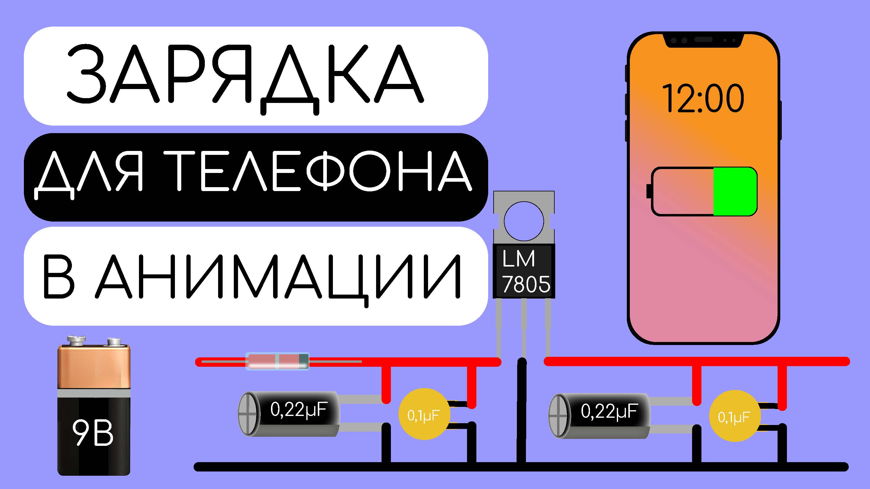 КАК ЗАРЯДИТЬ ТЕЛЕФОН ОТ ОБЫЧНОЙ БАТАРЕЙКИ - Принцип работы в анимации.