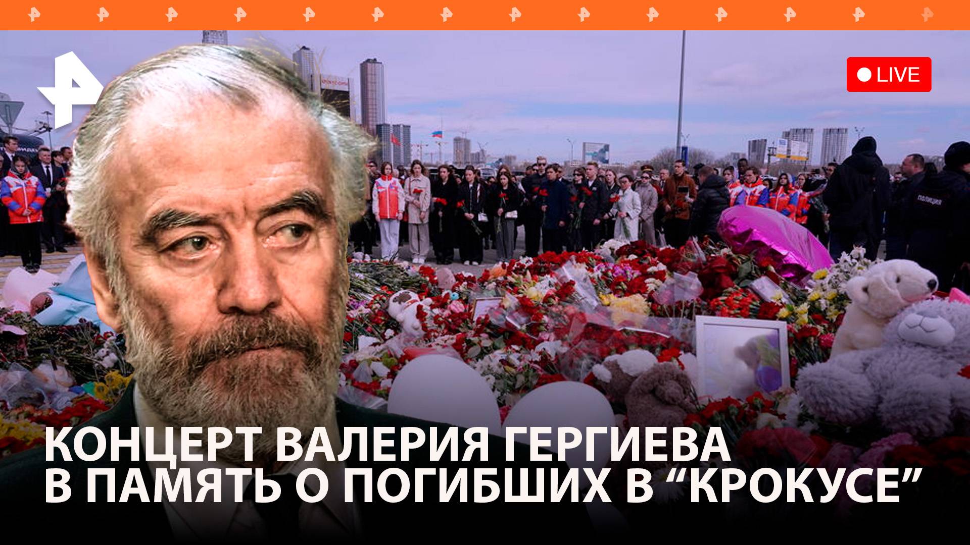 В память о жертвах трагических событий в "Крокус Сити Холле" художественный руководитель Большого и Мариинского театров Валерий Гергиев выступит с симфоническим оркестром у стихийного мемориала, возникшего у концертного зала. Вечером 22 марта перед концертом в "Крокус Сити Холле" в подмосковном Красногорске произошла стрельба и пожар. По свидетельствам очевидцев, в зал ворвались несколько вооруженных мужчин в камуфляже без масок. Они открыли беспорядочную стрельбу по людям и бросали зажигательные шашки. По последним данным, в результате теракта погибли 144 человека. У "Крокус Сити Холла" образовался стихийный мемориал, где куда приносят цветы, свечи и игрушки в память о жертвах.