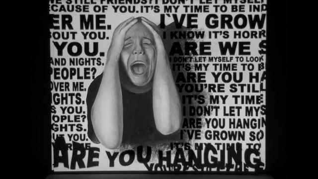 This portrait was drawn using compressed and vine charcoal. The video, that was created in Adobe After Effects was then projected over the portrait. This piece is about dealing with recurring negative affirmation. I would constantly have thoughts about a partner that moved away, these thoughts would entangle themselves and create a great deal of anxiety within me. Writing them down was very meditative and helped me to overcome this struggle. I was inspired by this faze in my life to create a piece about the issue of negative affirmation The black and white lithograph by Jose David Alfaro Siqueiros titled “Moises Saenz” inspired this portrait. The way in which he captures particular expressions through the solid volumetric forms makes the expressions clear and very readable. I attempted to achieve a similar style of drawing as Jose David Alfaro Siqueiros in this piece as the soft gradations allow for viewers to focus on the modeled forms that created the expressions as well as the projections at the same time. Jenny Holzer is another artist that has influenced this piece, as she projects words and phrases she calls truisms onto buildings. Her clever use of projections made think about ways in which I could integrate this art form in to my work.