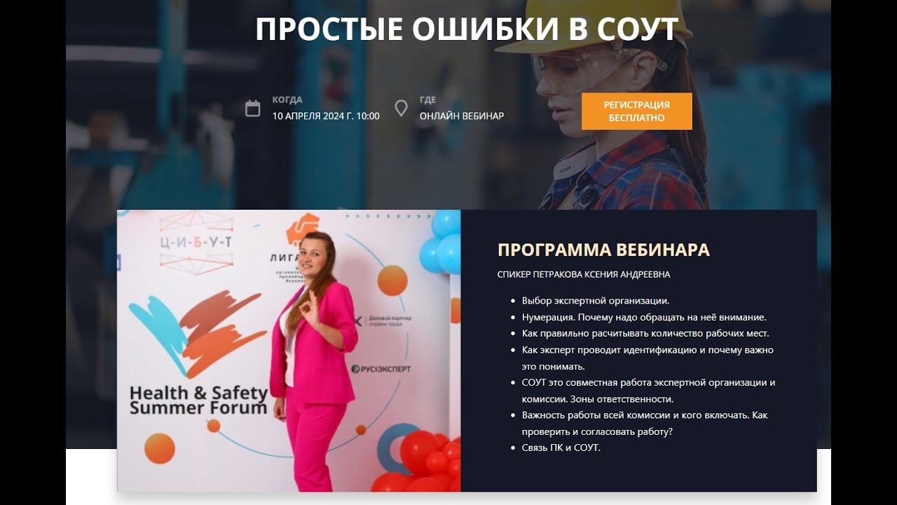 ПРОГРАММА ВЕБИНАРА СПИКЕР ПЕТРАКОВА КСЕНИЯ АНДРЕЕВНА - Выбор экспертной организации. - Нумерация. Почему надо обращать на неё внимание. - Как правильно рассчитывать количество рабочих мест. - Как эксперт проводит идентификацию и почему важно это понимать. - СОУТ это совместная работа экспертной организации и комиссии. Зоны ответственности. - Важность работы всей комиссии и кого включать. Как проверить и согласовать работу? - Связь ПК и СОУТ.