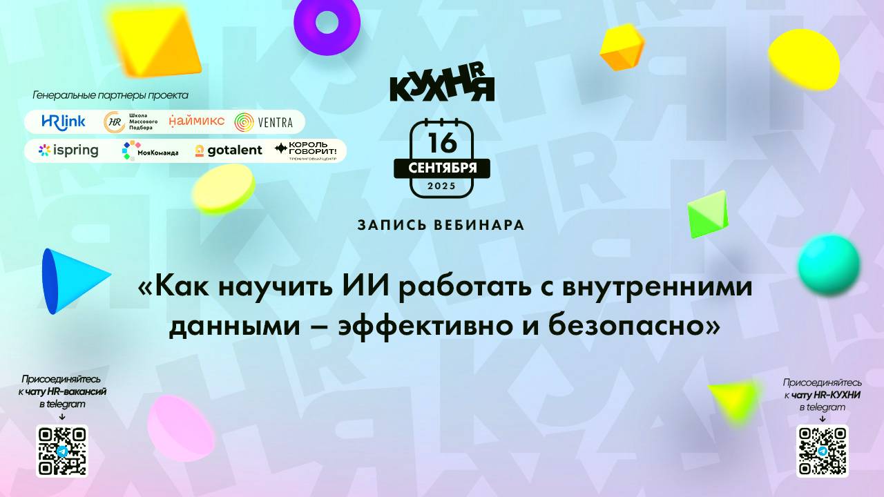 Присоединяйтесь к чатам и каналам HR-КУХНИ в телеграм: - Основной чат HR-КУХНИ в телеграм - https://t.me/+tYgAH0PgPQVkOWIy - Канал HR вакансий в телеграм - https://t.me/+CMNAN2u1hjo3M2Ri - Канал HR-EVENTS в телеграм - https://t.me/hr_kitchen - Канал HR JOURNAL в телеграм - https://t.me/hrkitchenjournal Полезные ссылки: - Каталог HR решений - https://hrkitchen.ru/exhibition - График конференций, бесплатных вебинаров, а также бесплатные курсы – https://hrkitchen.ru/ - Стать спикером HR-КУХНИ - https://hrkitchen.ru/speakers - Подписаться на полезную e-mail рассылку от HR-КУХНИ (новости, гайды, чек-листы, подарки от партнеров) - https://hrkitchen.ru/subscribe Реклама. ООО “Технологии Защиты”, ИНН 7735558901 ЕРИД: 2VfnxwpjFaG