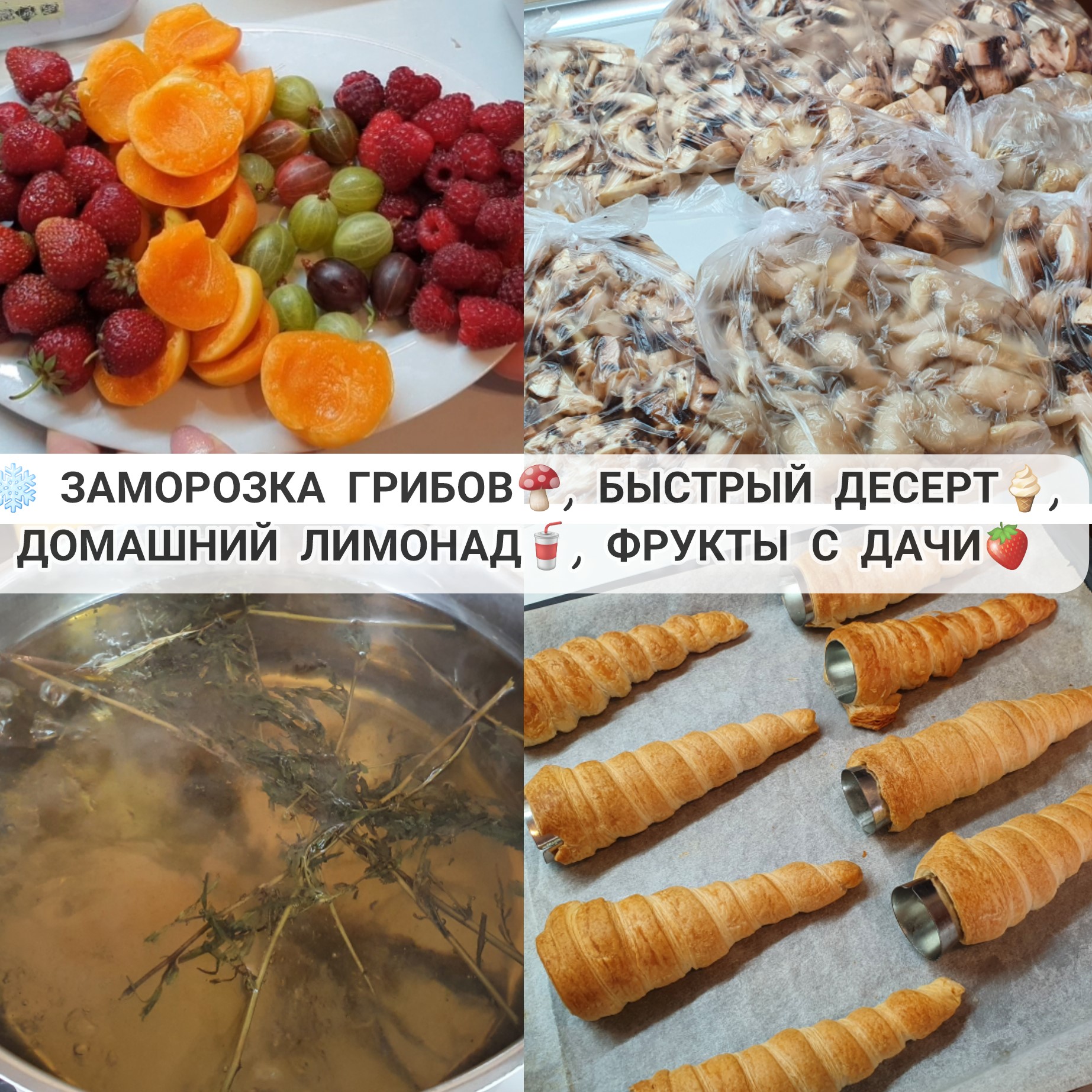 домашний напиток тархун / слоеные трубочки с кремом / заморозка грибов