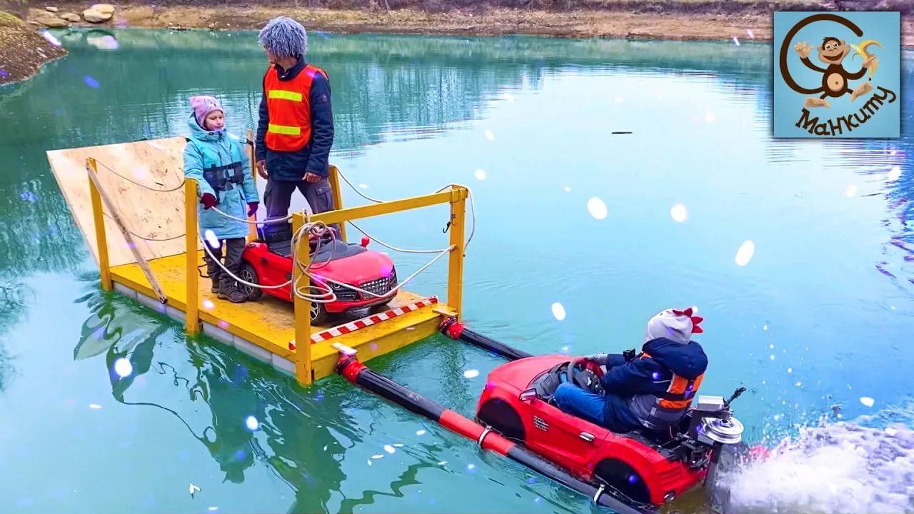 Дети и Машина. Диана и Даня играют в паром для машинки-лодки. Манкиту Pretend Play