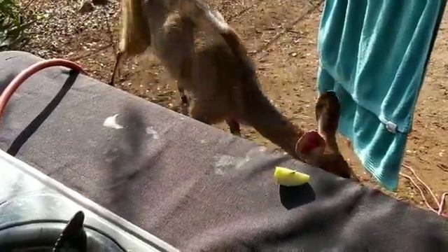 Bushbuck female enjoying some apple at our table