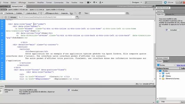 هذا هو الدرس الرابع في دورة Alecso M-Developper في برمجة تطبيقات الهواتف الذكية باستخدام jQuery Mobile . الدرس الرابع : إنشاء تطبيق بسيط باستخدام jQuery Mobile . تحميل الكود : https://www.dropbox.com/s/fcl7at2eyv43tx9/Activit%C3%A9_3_jquery.rar?dl=0