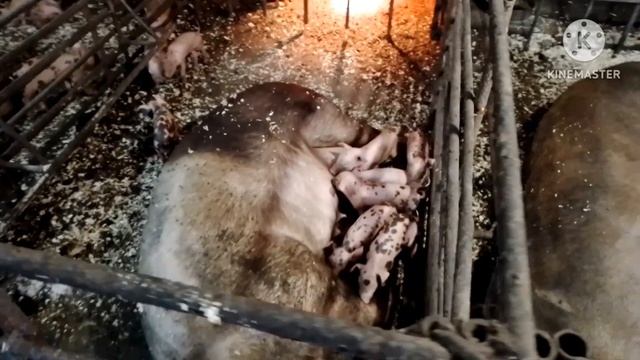 Опоросилась Черноносая Дюрчиха. Делю поросят между свиноматками поровну.