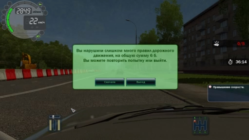 City Car Driving Версия 1.5.6 Дата съёмки 16.09.2018 Сумма штрафов 6 б. У Вас заглох двигатель - 1 б. Превышение допустимой скорости - 5 б.