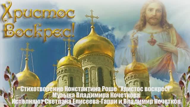 Стихотворение Константина Роше "Христос воскрес!", https://clck.ru/D8YUw Музыка и клип Владимира Кочеткова, https://www.chitalnya.ru/work/2784369/ Исполняют Светлана Елисеева-Гарри и Владимир Кочетков
