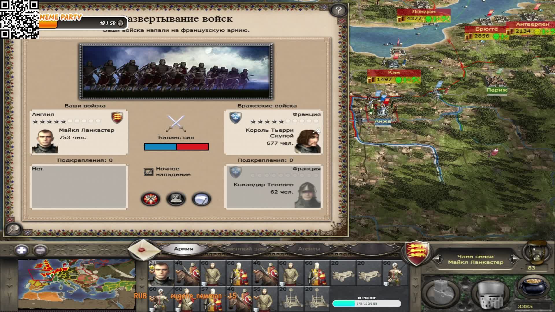 Medieval II: Total War Пытаюсь воевать за англию, пока что вроде бы всё не так уж и плохо идёт, но война уже с 2 странами и может быть скоро нападёт и ещё) Тем кто хочет поддержать стримера и канал - https://www.donationalerts.com/r/demonkoshak или по QR-коду в углу экрана)