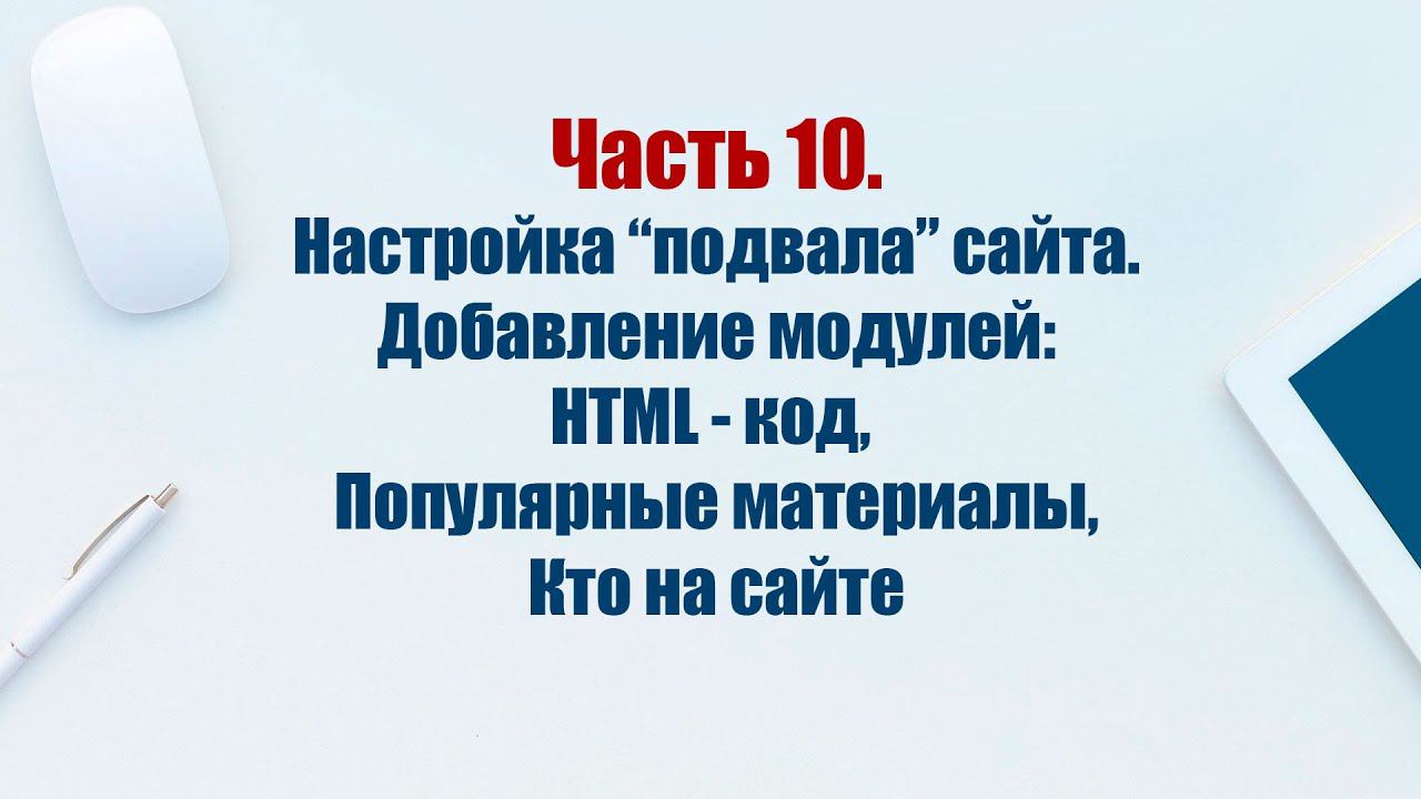 Создаем и публикуем модули в футере сайта: 1. HTML-код с контактами 2. Популярные материалы 3. Кто на сайте ---------------------------------------------- Дополнительные материалы https://joomla.school/page/sozdanie-sayta-na-cms-joomla-5-video Скачать шаблон SI School 4 https://joomla.school/catalog/shablon-joomla-si-school-4