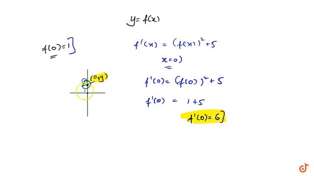 To ask Unlimited Maths doubts download Doubtnut from - https://goo.gl/9WZjCW A differential function `y=f(x)` satisfies `f"(x)-(f(x))^2+5` and `f(0)=1`. Then the equation of tangent at the point where the curve crosses y-axis is