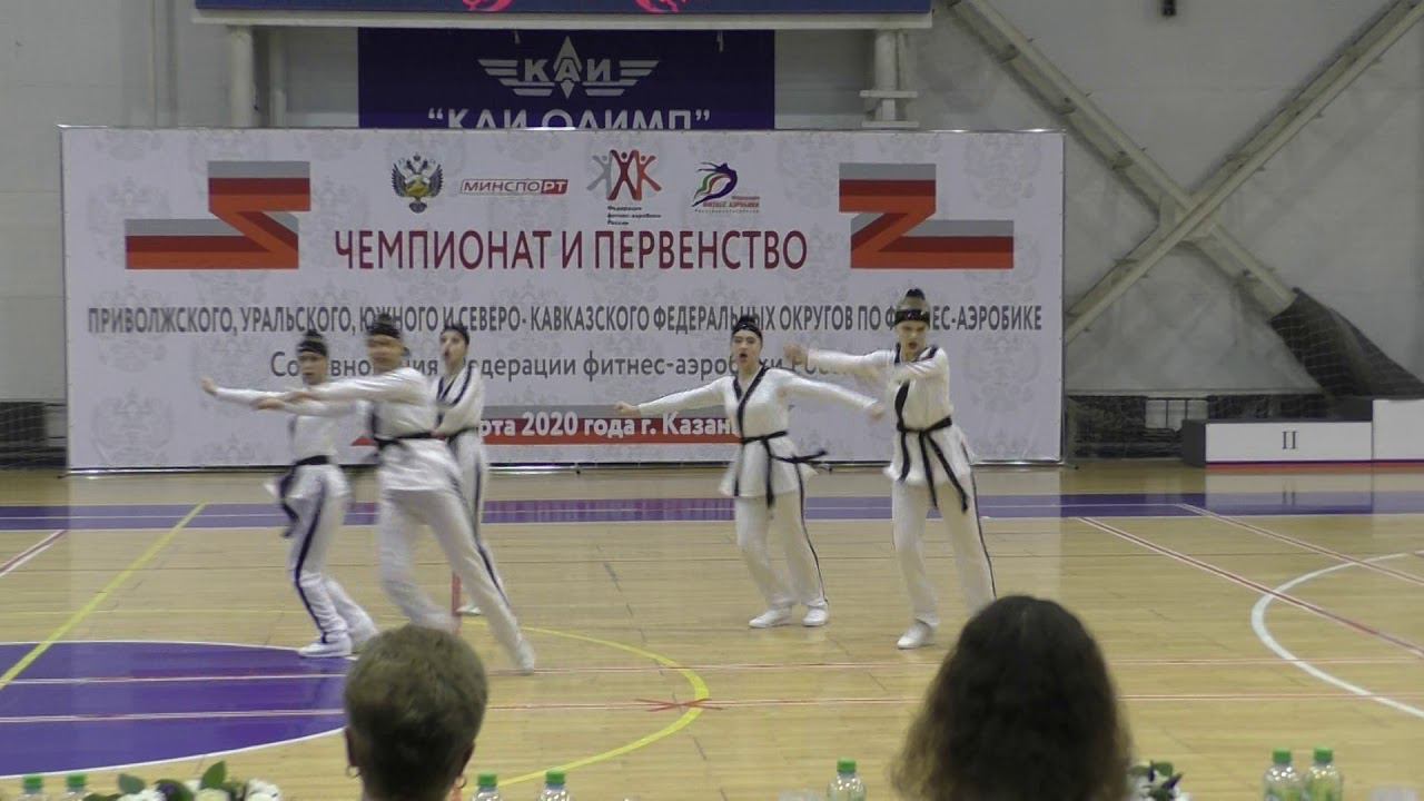 Аэробика (5 человек). Юниоры-юниорки 14-16 лет. Соревнования Первенства Приволжского, Южного, Северо-Кавказского и Уральского федеральных округов по фитнес-аэробике в 2020 году. РТ, г. Казань, ул. Чистопольская, 67, КСК "КАИ Олимп" 06-09 марта 2020 г.