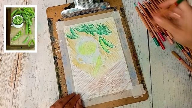 Зелёный горох. Курс быстрых зарисовок. Деревенские мотивы. Рисунок за 15 минут. Цветные карандаши.