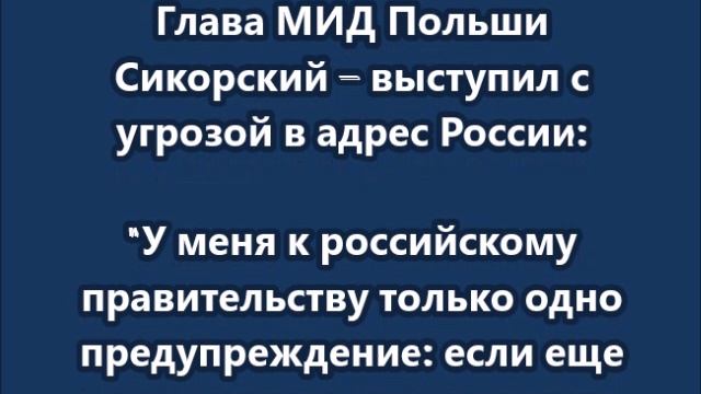 Глава МИД Польши Сикорский выступил с угрозой в адрес России