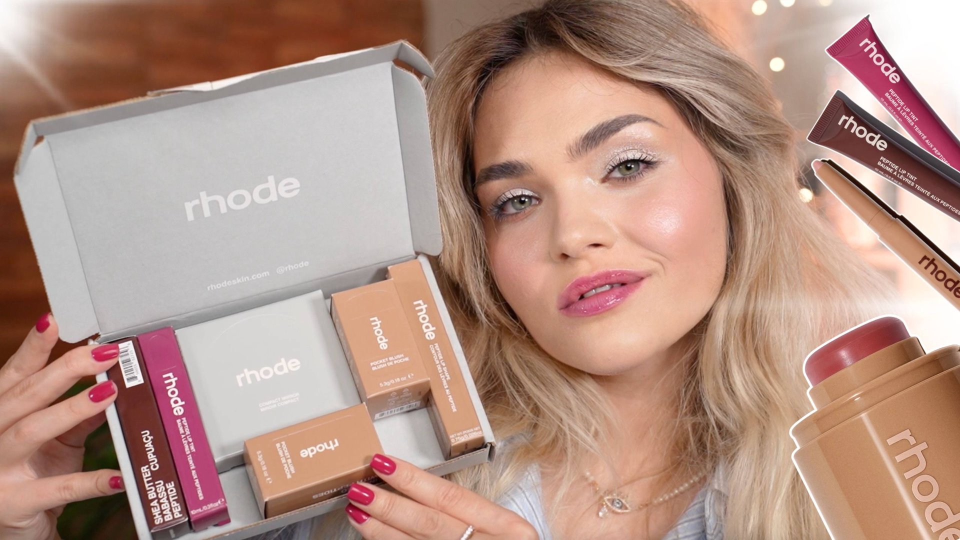 ПОЛНЫЙ ОБЗОР ВСЕХ ПРОДУКТОВ RHODE – тестируем карандаши, бальзамы, румяна и зеркало Хейли Бибер 💖