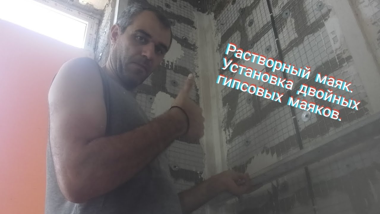 Растворный маяк.Установка двойных гипсовых маяков .Углы 90°.