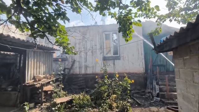 Утром террористы из ВСУ обстреляли дома мирных жителей на Трудовских. Один из снарядов попал в барак, сгорело полностью несколько квартир. Барак выгорел дотла. Погибла пожилая женщина. Нет вам прощения, нелюди. Если кто желает помочь –помогите людям, они остались без ничего.