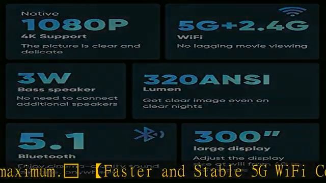 TMY Native 1080P Projector with 5G WiFi and Bluetooth 5.1, 320ANSI 4K Supported Mini Projector, Por