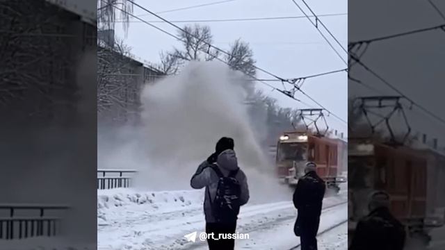 Так в Новосибирске чистят от снега трамвайные пути, утверждают местные каналы
