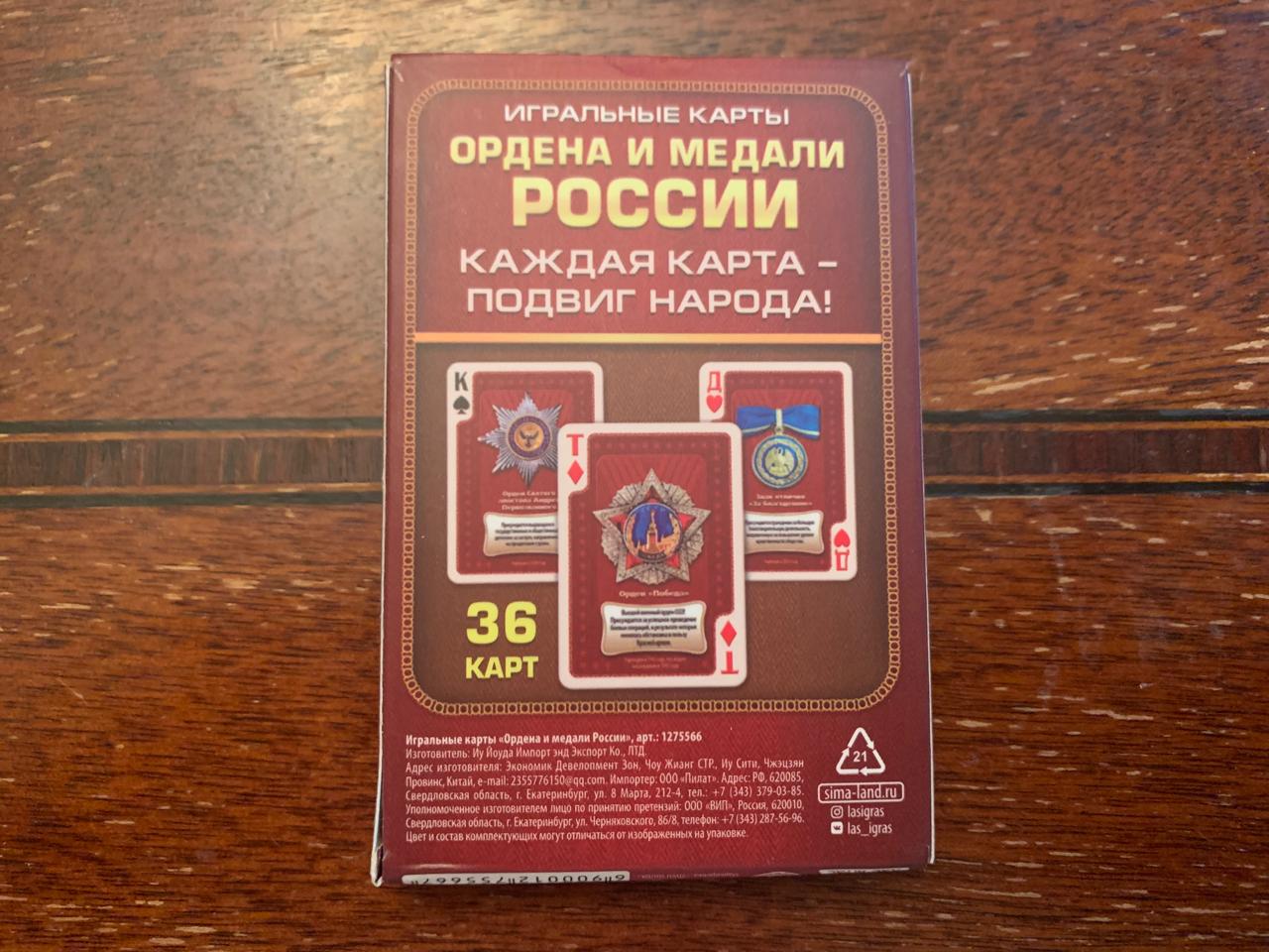 КАРТЫ ИГРАЛЬНЫЕ 12 ВЫПУСК "ОРДЕНА И МЕДАЛИ РОССИИ"