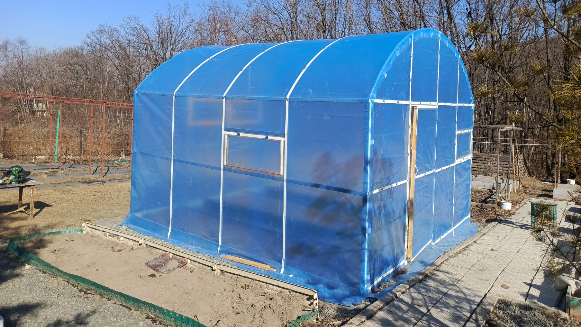 Укрытие теплицы пленкой. Таймлапс.