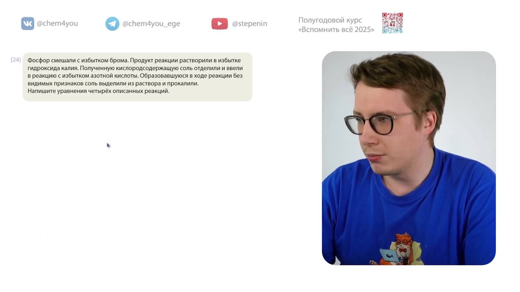 📗 Учебник по органической химии. Углубленный уровень, 10 класс, ФГОС: https://stepenin.ru/tasks/ebook-10 📑 Много тестов для подготовки к ЕГЭ по химии: 1. Задания по неорганике (больше 2000): https://stepenin.ru/tasks/common 2. Вся база заданий (больше 6000): https://stepenin.ru/tasks 💯🧠 Ждем всех на наших курсах подготовки к ЕГЭ: 👉 Курс подготовки к ЕГЭ-2025 по химии для 11 классов: https://stepenin.ru/go/6u3araee 👉 Курс подготовки к ЕГЭ-2026 по химии для 10 классов: https://stepenin.ru/go/H45L7wZZ 📚 Рабочая тетрадь по органической химии: https://stepenin.ru/store/book/book-organic 📚 Книга «Тематические тесты» (500 страниц) : https://stepenin.ru/store/book/tests-bigbook 📚 Книга «40 вариантов к ЕГЭ-2025» (350 страниц): https://stepenin.ru/store/book/sbornik30 📚 Задача 33. Углеводороды: https://stepenin.ru/store/book/hydrocarbons-book ============================= 🧪 Подготовка к ЕГЭ по химии на самые высокие баллы на наших курсах: https://stepenin.ru/go/6u3araee Телефон Андрея Степенина: +7 926 625-73-33 📚 Много полезного образовательного контента на наших площадках: 🐈 ВК химия: https://vk.com/chem4you 🦭 ВК биология: https://vk.com/bio4you ✈️ Химическая тележка 11 класс: https://t.me/chem4you_ege ✈️ Химическая тележка 10 класс: https://t.me/stepenin10 ✈️ Биологическая тележка: https://t.me/bio4you