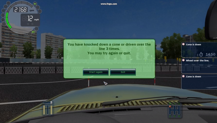 City Car Driving Track test FAILED-You knocked down the cone or wheel on the line 3 times