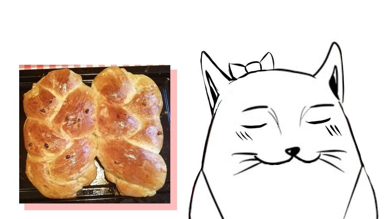 700 гр.муки, 50гр. изюма (предварительно замочить на 20 минут, в теплой воде), щепотка соли, 3ст.лож. сахара, 3ст.лож. раст.масла, 2 ст.лож. меда, 1 пачка ванилина, 1 пачка дрожжей, 250мл. теплой воды. Тесто замесить и оставить в тепле на 1 час, затем сплести его и оставить на еще 1 час в тепле. 1 ст.лож.масла для промазки формы и 1 яйцо для промазки теста. Выпекать при 180 градусах, 20-25 минут.