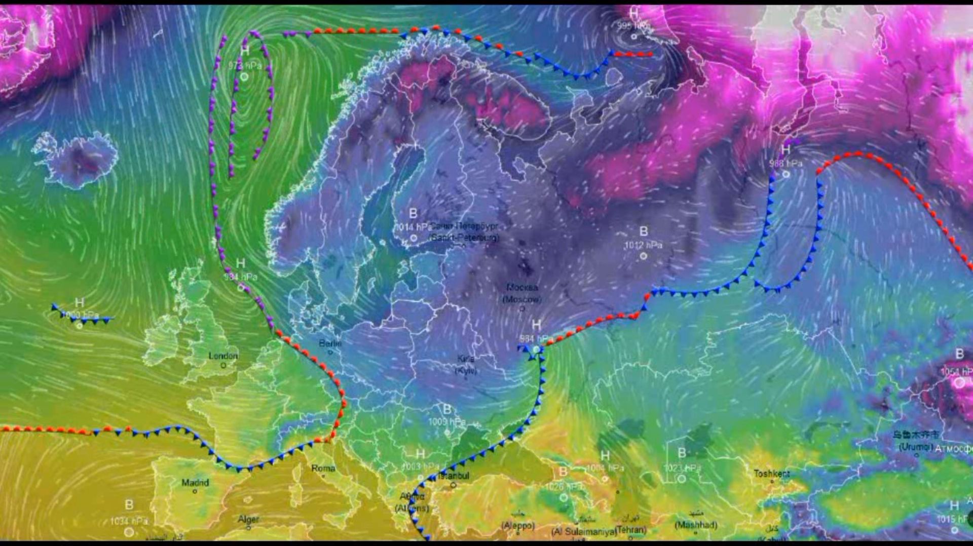 Движение воздушных масс воздуха над Европой и ЕТР за февраль 2026 года