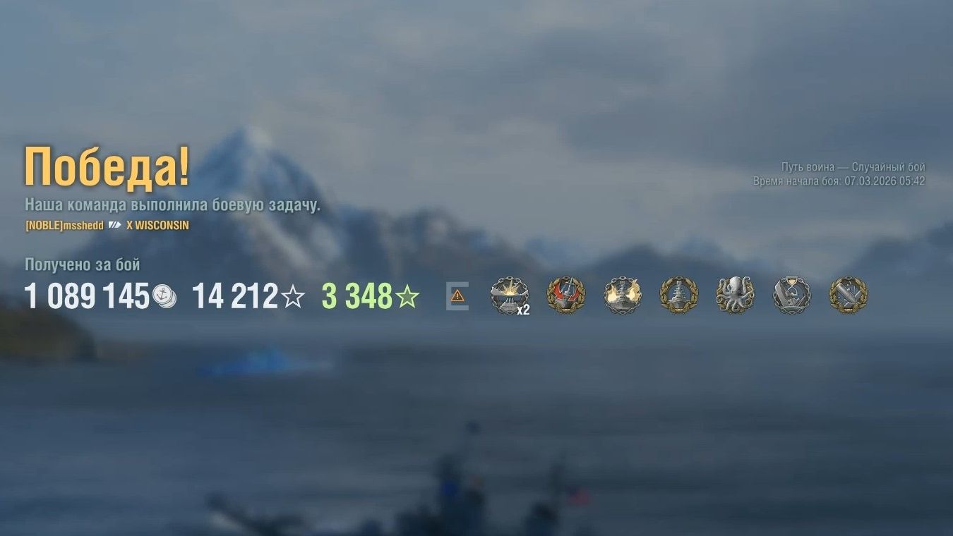 Линкор Wisconsin. Карта: Путь воина - Случайный бой. Урон: 303к. Wisconsin - Линкор США 10 уровня.