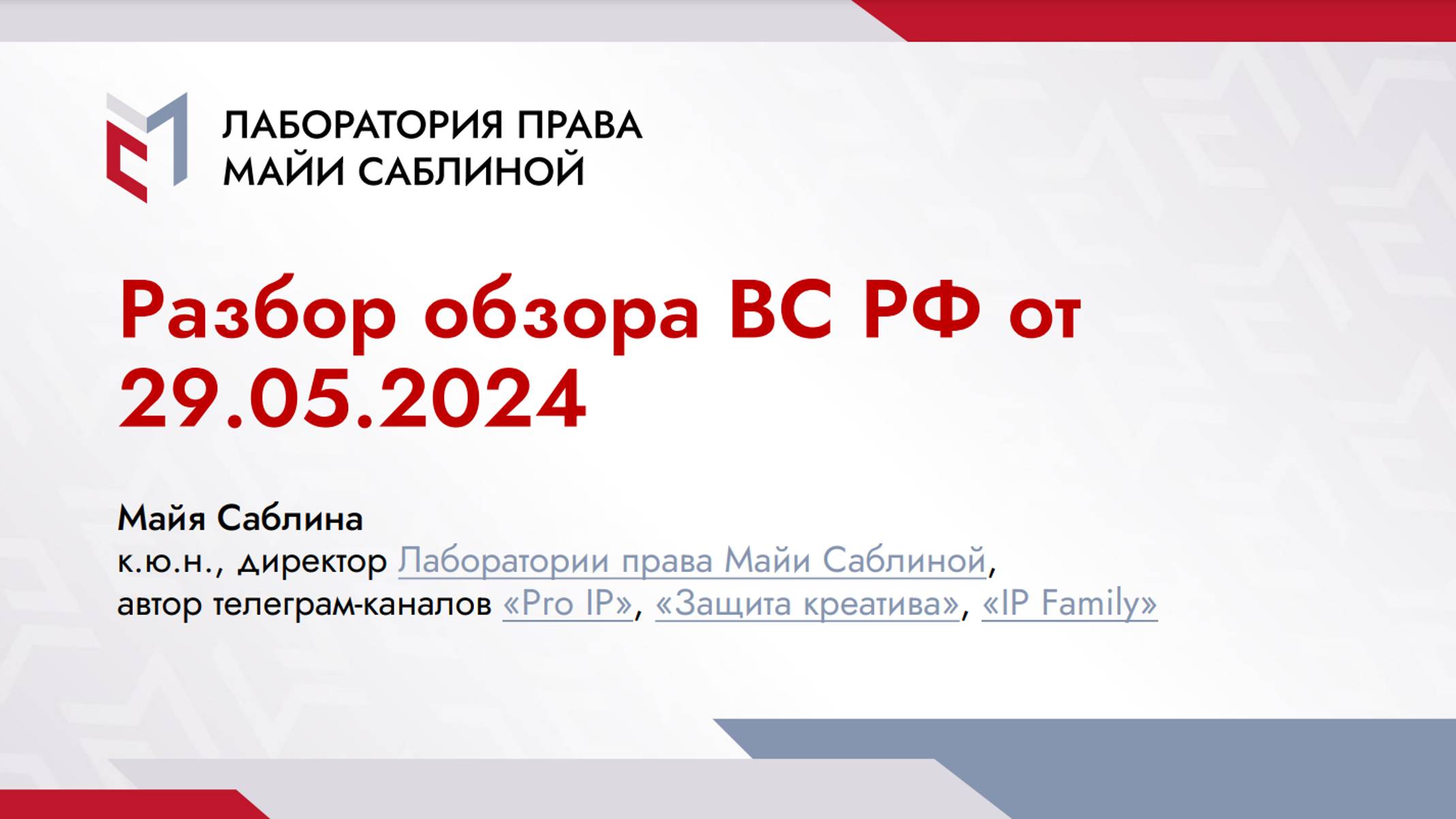 Онлайн-встреча "Разбор обзора ВС РФ от 29.05.2024"