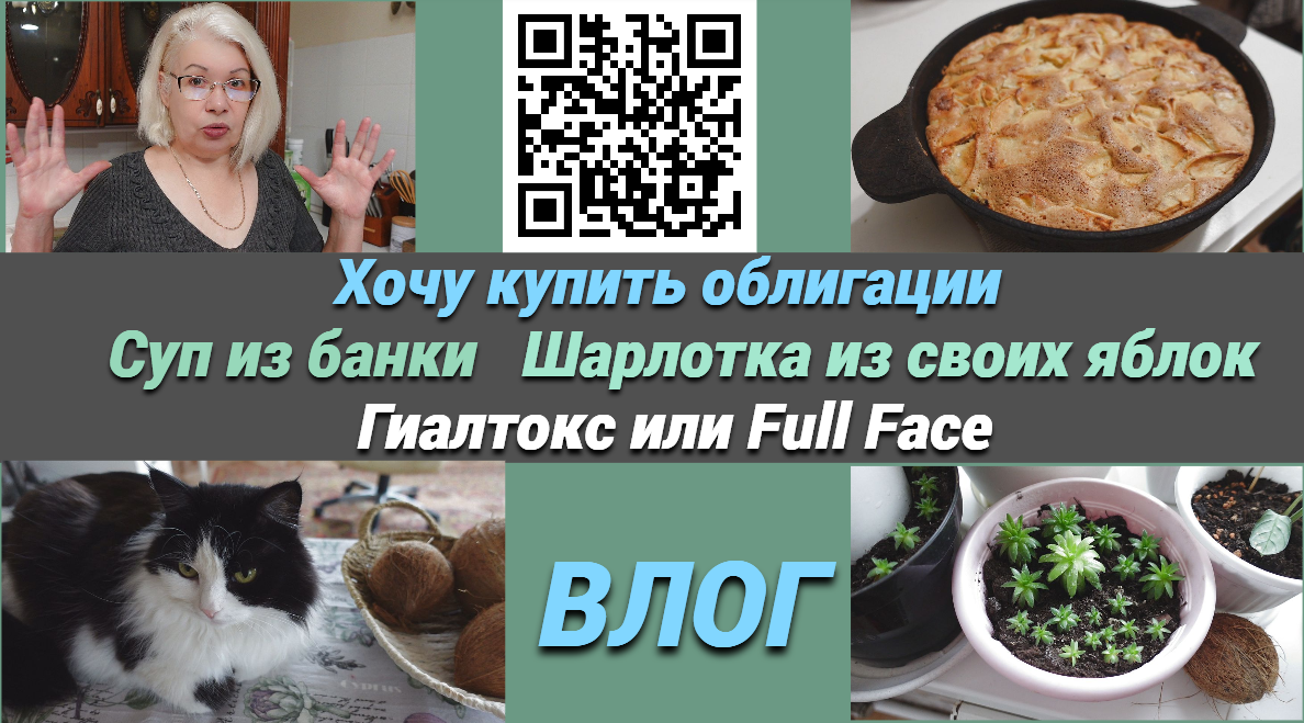Шарлотка из своих яблок/Хочу купить облигации/ Гиалтокс или Фул фейс/Суп из банки, быстро и вкусно.