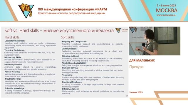 Зверева Ирина Олеговна. Soft vs Hard skills: что нужно и полезно в профессии эмбриолога. Конференция мКАРМ-XIX, прекурс «Для маленьких», 5 июня 2025