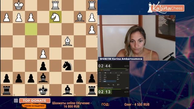 2-х часовая Арена по 3 минуты. Принять участие может каждый! Для участия вступайте в мой клуб: https://lichess.org/team/karinachess-club и регистрируйтесь в турнире: https://lichess.org/tournament/JDVmj6zK Поддержать канал: https://www.donationalerts.com/r/karinachess1 Подписаться на мой канал: https://www.youtube.com/channel/UChor8u_hhgrjX2lt0QLzZHA?sub_confirmation=1 Рестрим: https://www.twitch.tv/karinachess1 Рада приветствовать Вас на канале женского международного гроссмейстера, международного мастера Карины Амбарцумовой! Я - профессиональная шахматистка и тренер. Здесь вы сможете найти обучающие видеоуроки по шахматам, комментарии турниров, стримы моей игры в блиц шахматы. Подписывайтесь на мои странички в соц.сетях: ВКонтакте: https://vk.com/karinachessclub Twitch: https://www.twitch.tv/karinachess1 Почта для связи: karinachess@mail.ru Мой сайт: http://chesscoach.ru/ #шахматы #КаринаАмбарцумова #стримшахмат #шахматыблиц